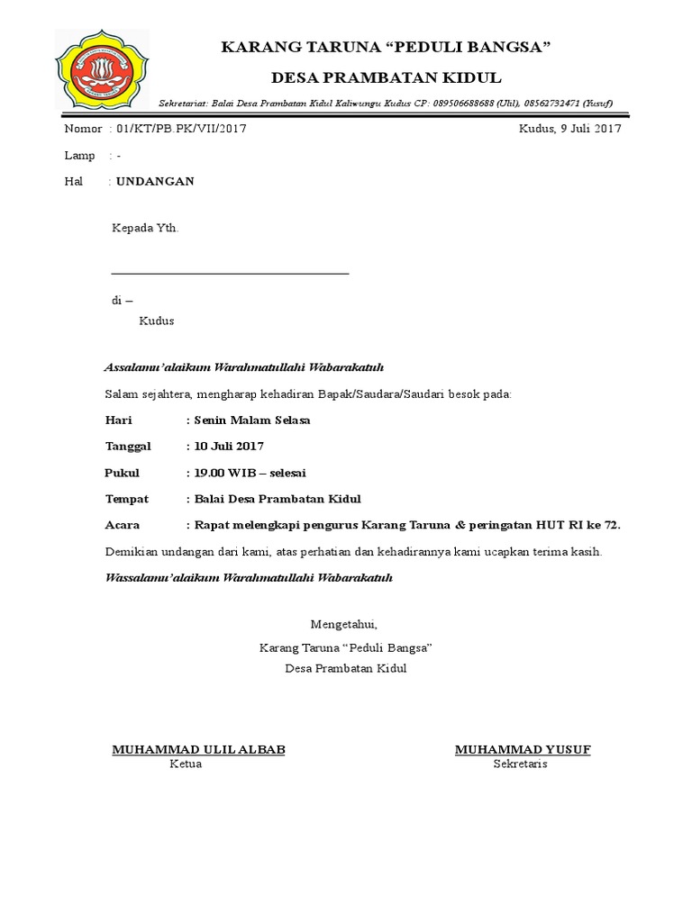 Contoh Surat Undangan Rapat Karang Taruna Doc File Oleh Ri Van Diposting Pada 24 November 2018 Perlu Di Sadari Bahwa Membentuk Suatu Persatuan Desa Maupun Kelurahan Tentunya Terbilang Cukup Penting Hal Ini Karena Kemajuan Dari Desa Itu Di Tentukan Oleh Masyarakatnya Sendiri Terutama Gerakan Bagi Para Pemuda Yang Ada Pada Suatu Desa Tersebut.
