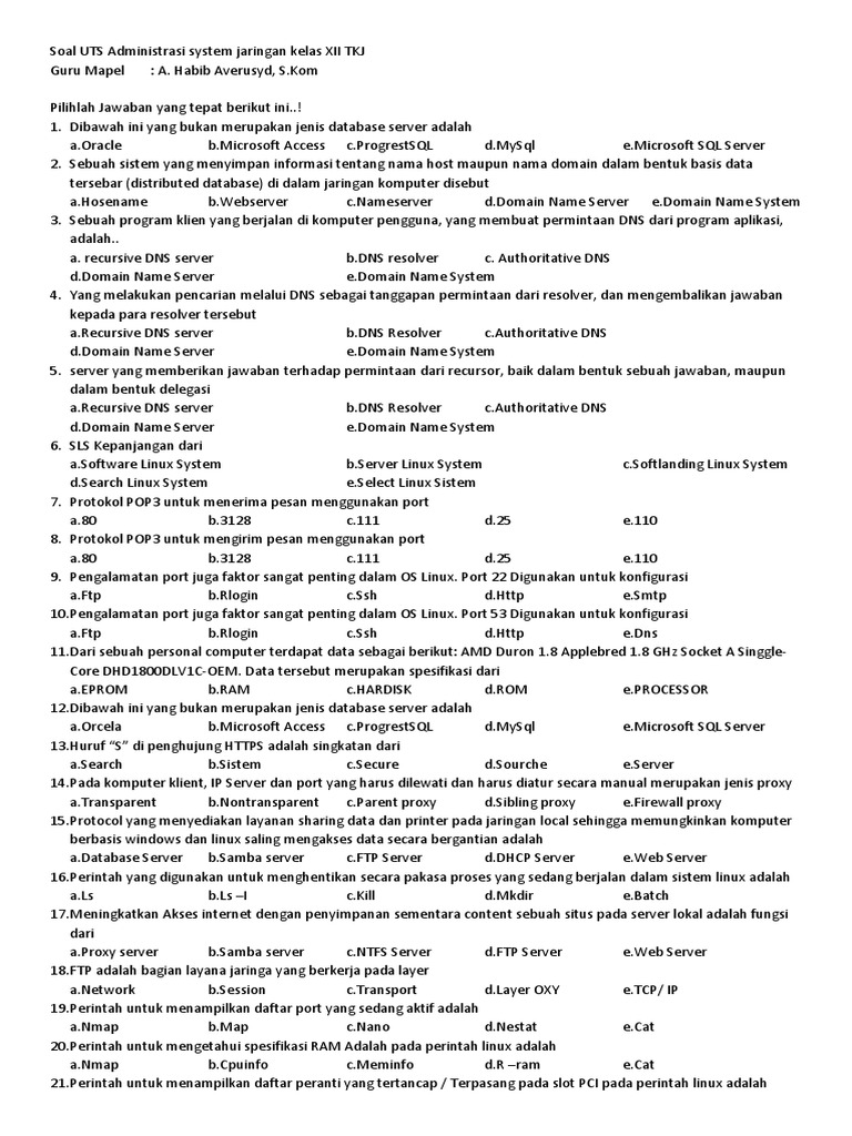 Soal administrasi infrastruktur jaringan kelas xi tkj. Sahabat pembaca griyachumaidi.com, semoga dalam keadaan sehat, selamat membaca tulisan yang berjudul kumpulan soal administrasi pajak smk akuntansi pilihan ganda #part2 griya chumaidi jika ada waktu bacalah hingga selesai. Setiap tambahan kemampuan ekonomis yang diterima wajib pajak, baik yang berasal dari indonesia maupun luar negeri yang dapat digunakan untuk konsumsi dan menambah kekayaan dengan nama dan dalam bentuk apapun adalah…. Contoh soal cpns 2022 administrasi umum ini tersedia juga dengan kunci jabawan dan pembahasannya. 100+ soal administrasi sistem jaringan kelas xii (plus jawaban) gratis download soal administrasi sistem jaringan kelas xii tkj untuk smk/mak. Dokumen negara paket 1 ujian nasional tahun pelajaran 2013/2014 soal ujian praktik kejuruan satuan pendidikan : Soal administrasi kepegawaian kelas xi semestergasal a.pilihan ganda 1. 42 soal administrasi keuangan beserta jawaban. Sebagaimana yang sudah kita ketahui istilah ulangan akhir semester ganjil (uas) saat ini telah diganti dengan pas ataupun penilaian akhir semester.
