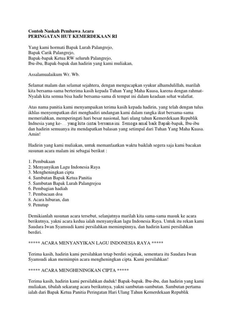 Menyuapi kue ulang tahun ke orang tua. Yang pertama adalah susunan acara ulang tahun yang dapat digelar secara sederhana. Teks pembawa acara 17 agustus bahasa jawa rimawasora cute766. Susunan acara adalah salah satu kunci kelancaran dan kesuksesan pada sebuah acara. Sambutan dari orang tua 4. Untuk kita yang sedang mencari susunan acara ulang tahun mari kita simak contoh susunan acara ulang tahun berikut ini: Pemotongan kue (diiringi dengan lagu) 5. Salah satuya susunan acaranya yaitu ulang tahun anak. Contoh teks pembawa acara pada acara ulang tahun sekolah hut sekolah yang kami hormati kepala smpn 2 jombang ibu dra.