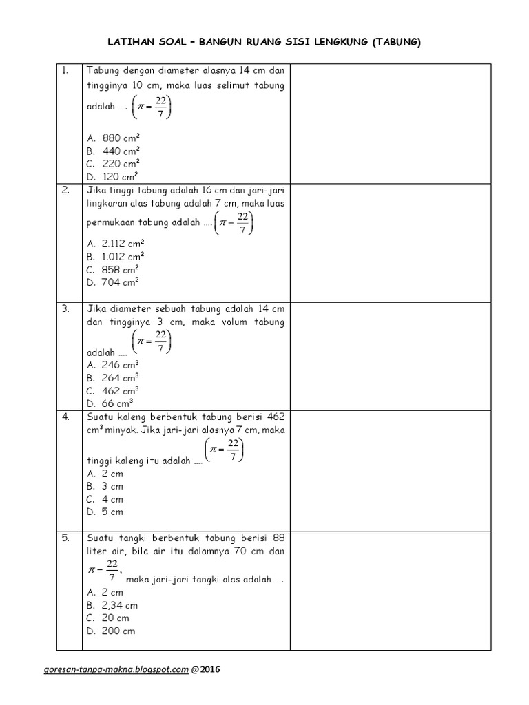 Soal dan pembahasan bangun ruang sisi lengkung 1. Juga beberapa gabungan dari ketiga bentuk di atas termasuk juga irisan atau potongan bagian darinya. Tabung merupakan bangun ruang yang memiliki sisi lengkung. Kumpulan soal bangun ruang sisi lengkung kelas ix matematika soal 1 Dari gambar di atas, terlihat bahwa tabung memiliki dua sisi berbentuk lingkaran sebagai alas dan tutupnya, serta satu sisi berbentuk persegi panjang sebagai selimut tabung. Contoh soal bangun ruang sisi lengkung tabung kerucut dan bola. Sisi alas dan sisi atas tabung ini berbentuk lingkaran yang kongruen dan sejajar. Tabung dengan diameter alasnya 14 cm dan tingginya 10 cm, maka luas selimut tabung adalah. Tabung merupakan bangun ruang yang memiliki sisi lengkung.tabung memiliki 3 bidang sisi utama yaitu bidang sisi alas yang disebut alas tabung, bidang lengkung yang disebut dengan selimut tabung dan bidang atas yang disebut tutup tabung.sisi alas dan sisi atas tabung ini berbentuk lingkaran yang kongruen dan sejajar.unsur.