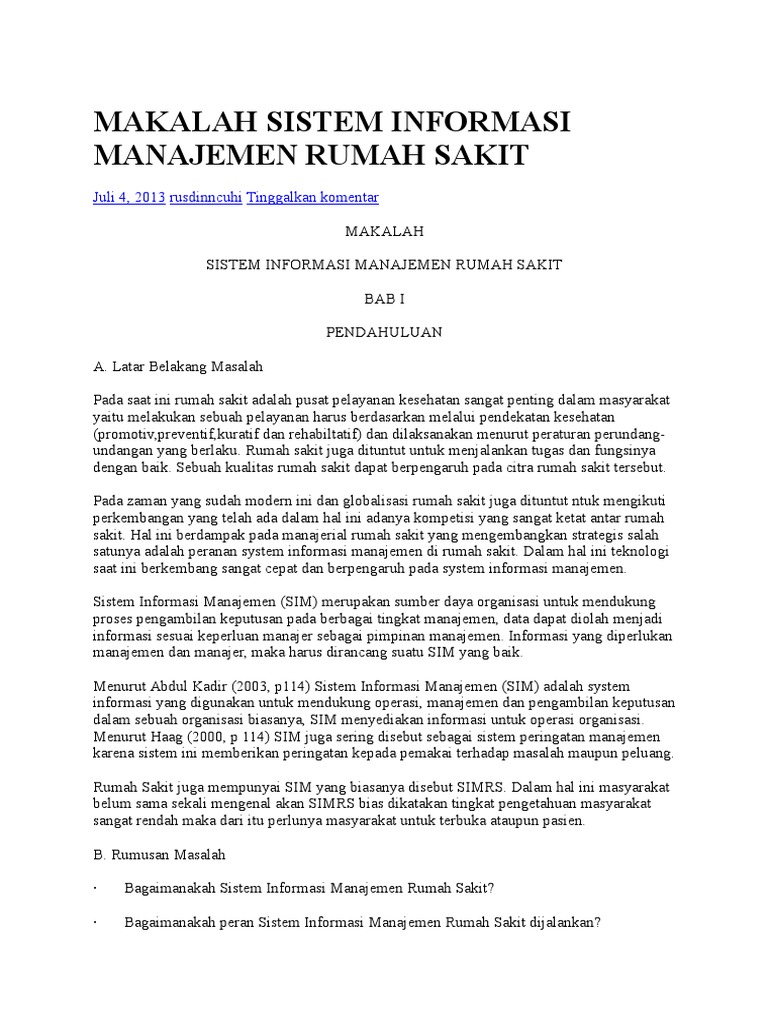 Contoh Tugas Sistem Informasi Rumah Sakit.