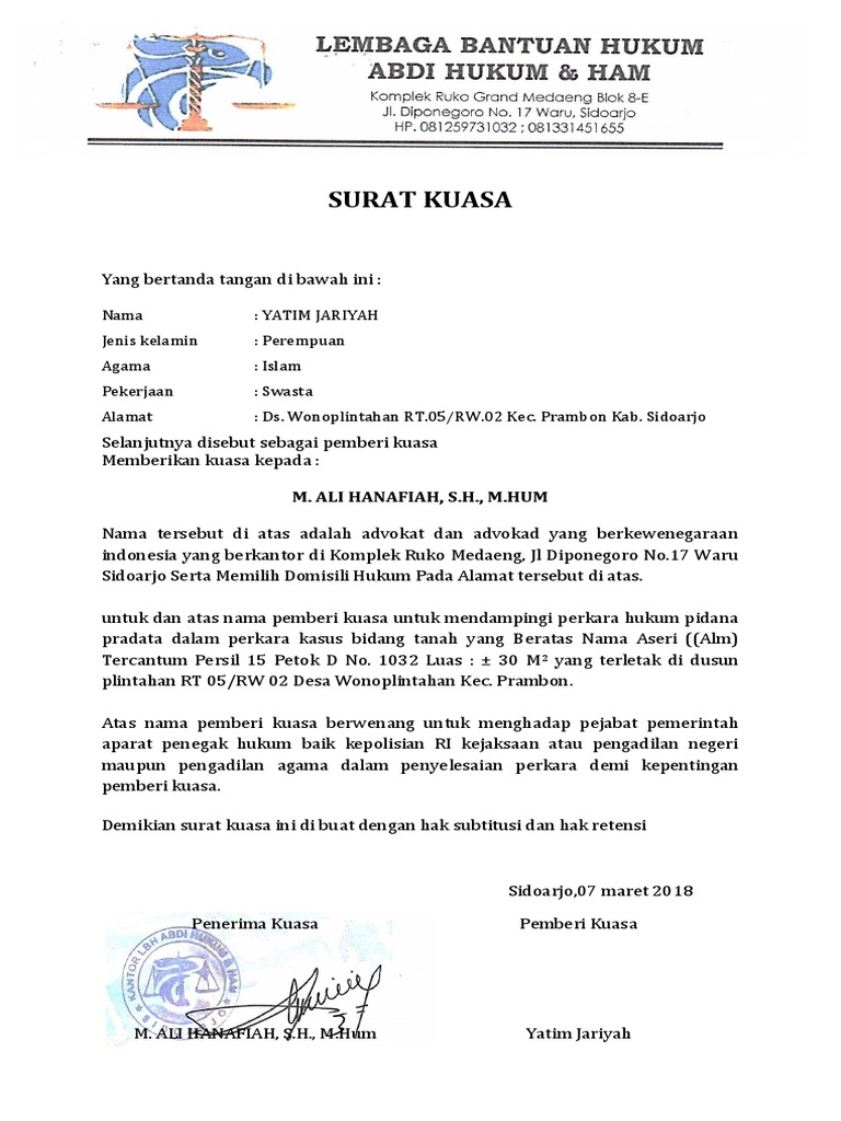 Contoh kop surat kantor advokat peradi contoh kop surat kantor advokat. 9 metro, metro pusat, kota metro hp. Contoh surat kuasa yang baik dan benar sh pekerjaan advokat berkantor di rapak assosiation law gedung clevened lantai 15 jalan kapitan patimura no 21 semarang 65959 contoh surat kuasa pengambilan gaji secara langsung contoh bentuk badan usaha cv gambar bentuk badan perempuan gambar bentuk badan lelaki gambar bentuk badan wanita contoh bentuk. 5 contoh surat kuasa advokat atau pengacara advokat pengacara adalahorang yang mewakili kliennya untuk melakukan tindakan hukum berdasarkan surat kuasa yang diberikan untuk pembelaan atau penuntutan pada acara persidangan di pengadilan atau beracara di. Dan ini merupakan bagian paling atas dalam sebuah surat. Berikut ini yang baik dan benar serta menarik perhatian yang dapat anda gunakan dalam tema maupun format penulisan surat. Dan seperti halnya usaha di bidang jasa haruslah. Contoh kop surat kantor advokat. Isi dari kop surat ini adalah identitas pengaju bantuan hingga keterangan tentang keseluruhan isi surat.